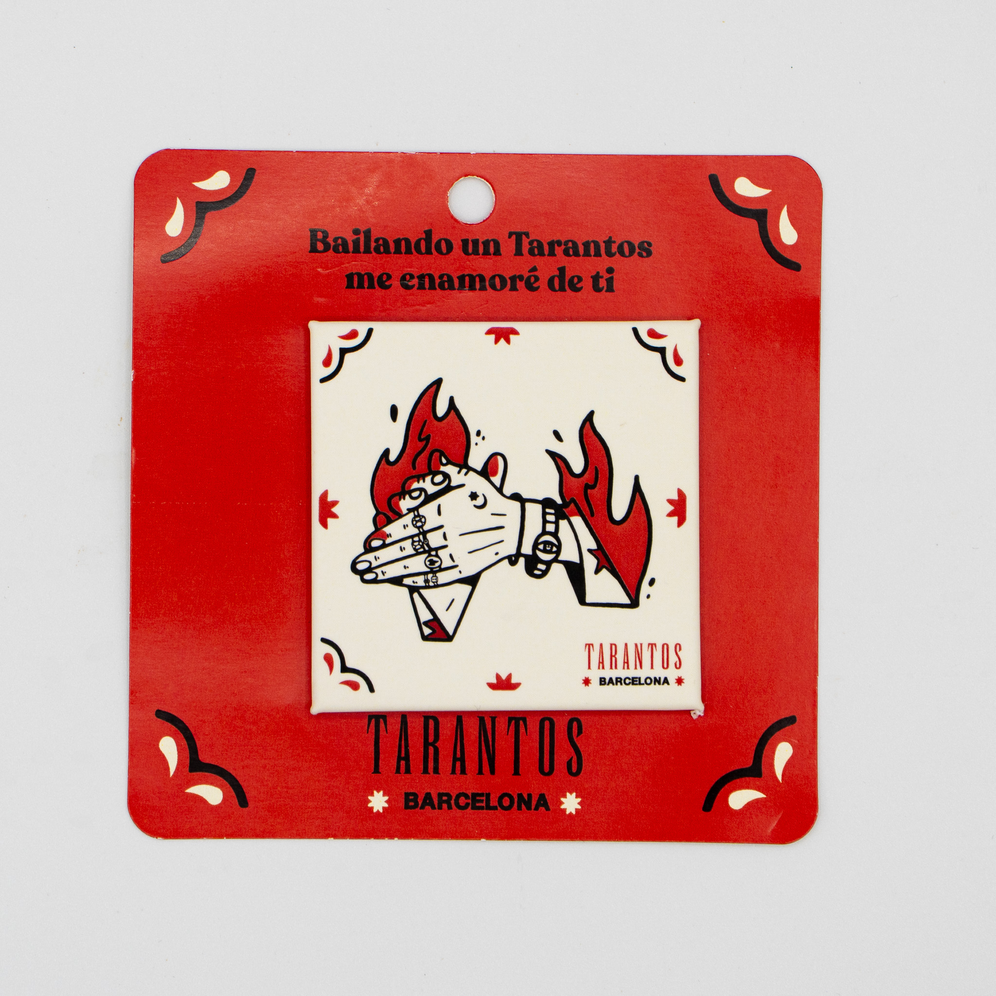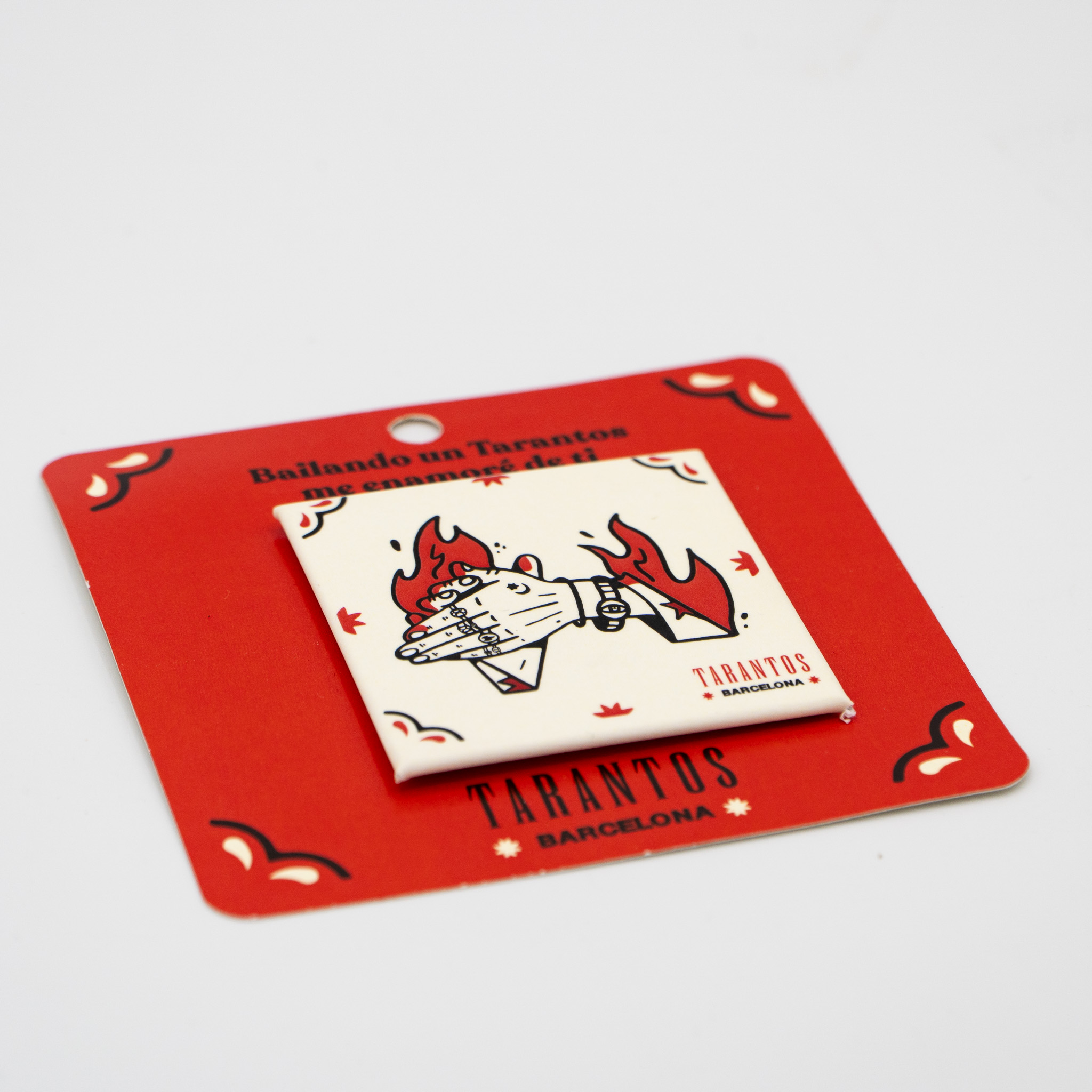 Palmas Flamencas – Imán de 50 x 50 mm con diseño artístico flamenco. Ilustraciones por @adriacuernolobo
