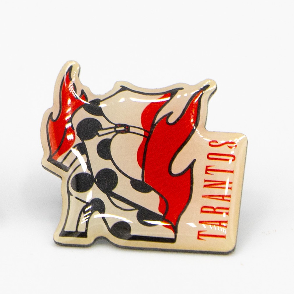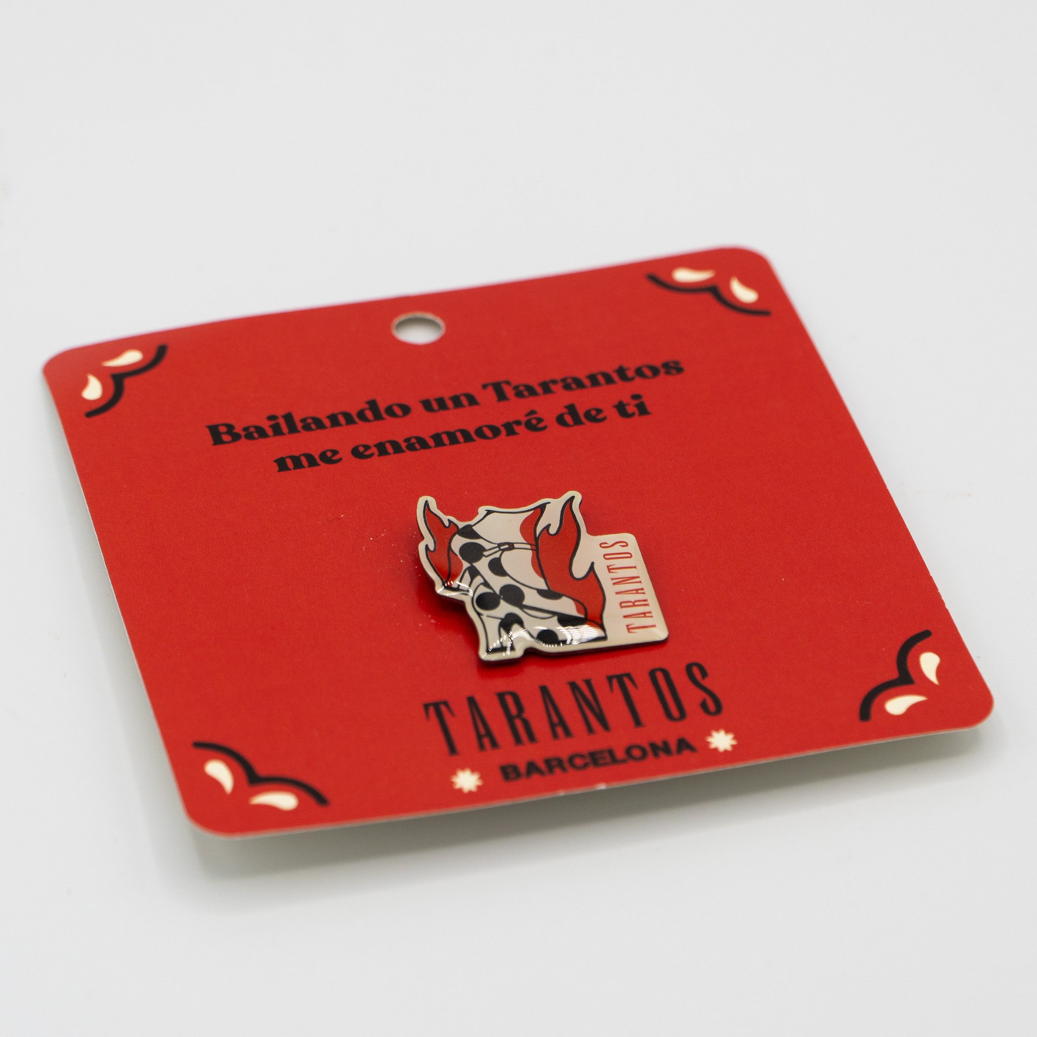 Taconeo Flamenco – Pin de acero inoxidable con acabado en gota de resina a todo color y valla de mariposa. Ilustraciones por @adriacuernolobo