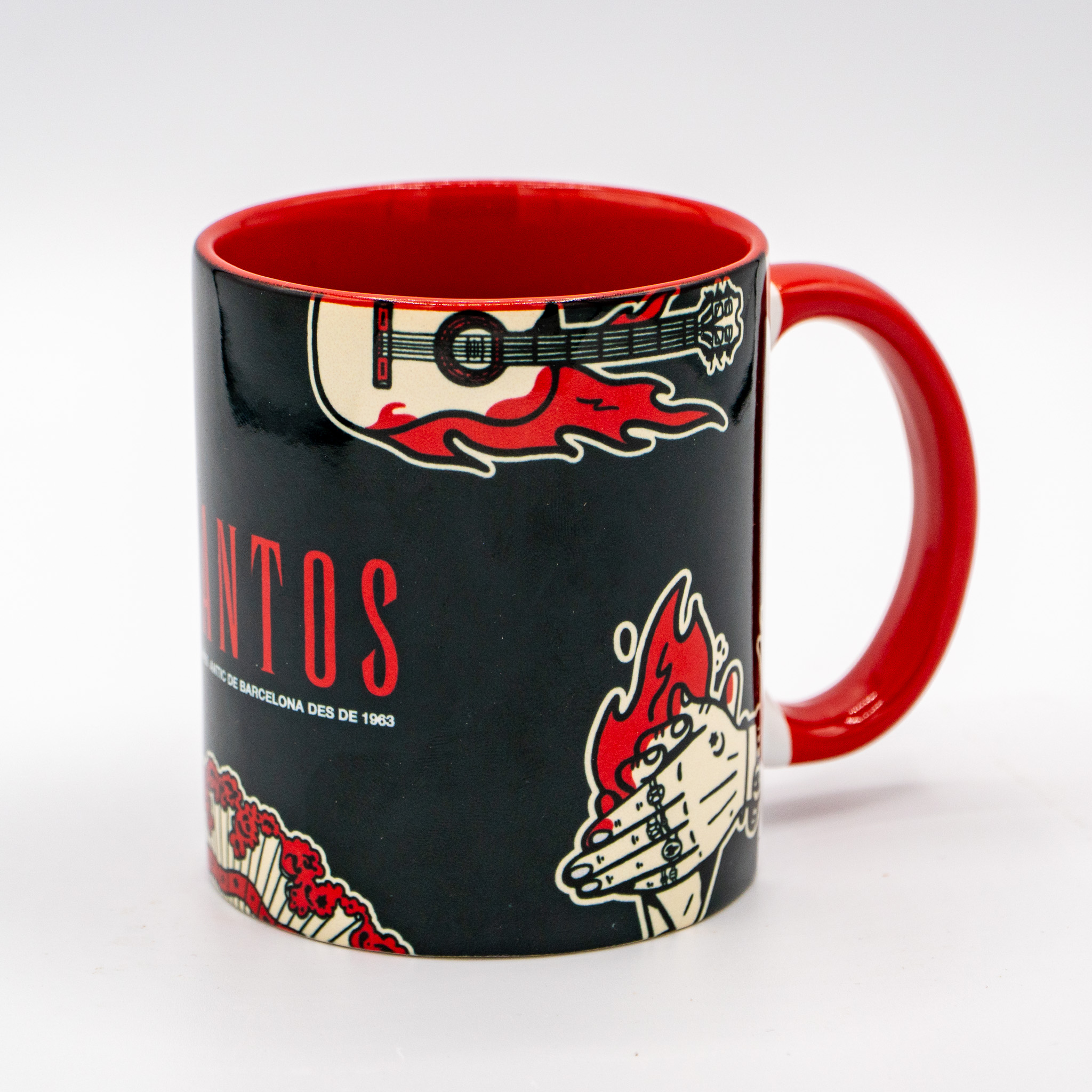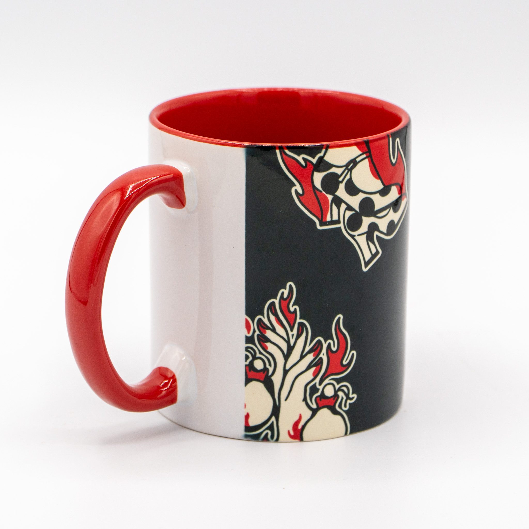 Taza de 300 ml con sublimación a todo color alrededor. Interior y asa rojo. Ilustraciones por @adriacuernolobo